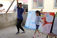 當(dāng)趣味英語走進社區(qū),通過與學(xué)齡前兒童家長面對面交流,大家不僅了解到當(dāng)?shù)貎和瘜W(xué)習(xí)英語的具體水平和需求,同時大家了解到要因材施教,在與兒童游戲中讓他們?nèi)谌胝Z境,增強語感、學(xué)習(xí)英語。家長對這種接地氣、寓教于樂的教學(xué)方式表示認(rèn)可和支持。