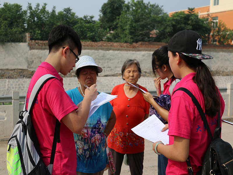 調研組成員手舉實踐團旗幟,走出校園,深入長溝基層,開展對“四個全面”戰略布局有關問題的調查研究。本次調研主要以“四個全面”新布局對長溝鎮基層民生的影響調研為主題,通過問卷及采訪獲取村民百姓對“四個全面”的認識與了解,傾聽他們的看法及建議。調研成員在調研過程中積極采訪,高效有序地收集相關信息,并于當天及時進行數據匯總與小結。通過此次校外調研,成員們感到,承擔社會責任,開展社會調研并不是一句簡單的口號,更需要當代大學生在實踐中切身付諸行動。