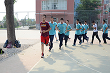十三、四歲正值青春期的孩子,活潑好動是他們的天性。離開了傳統知識的課堂,在是素質訓練中,學生們表現得更加活躍。男生們打籃球,奔跑玩鬧;女生們踢毽子,玩游戲。即使有些靦腆的同學也加入了隊伍和大家一起游戲。歡聲笑語充斥著操場的每一個角落,接近日落,但是學生們臉上的笑容卻像陽光一樣明媚,感染著每一位來支教的同學。課上是師生,課下是朋友,老師和同學們一同在操場上揮灑著汗水,用汗水展現青春的力量。