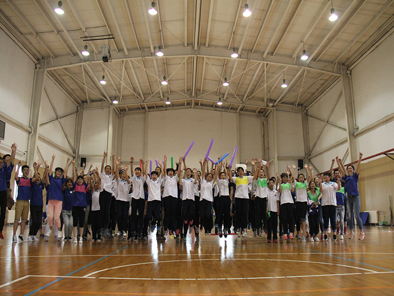 為了調動學生情緒,增進師生感情,實踐團成員帶領全體學生在體育館進行了一場“奔跑吧!交道!”趣味運動會。本次趣味接力賽包括“傳遞呼啦圈”、“毽球”、“撕名牌學英語”、“鎖鏈平面支撐”、“齊心協力向前跑”等新穎的特色環節,大家一起揮灑汗水、盡情奔跑,還學習了“Shuttlecock Kicking”、“Hula Hoop”、“Rope Skipping”等體育運動的英語說法,增強了體育英語的學習興趣。賽場上,同學們強健體魄,培養團隊意識、集體榮譽感,老師同學共同參與,配合默契;賽場下,大家共享勝利果實,收獲溫馨情誼。