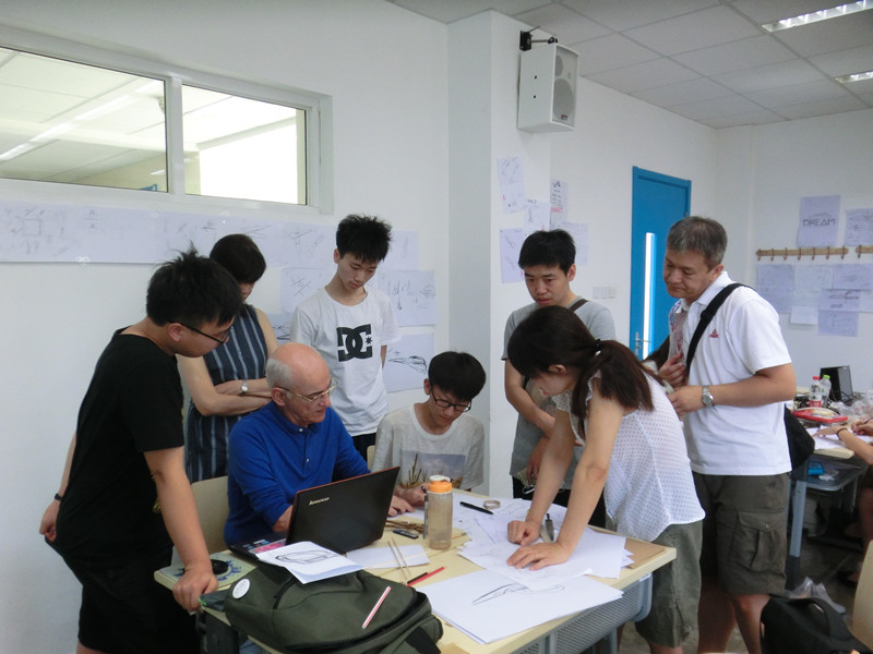 7月11日,藝術與傳媒學院產品設計專業與北京航空航天大學聯合舉辦的工作坊在我校阜成路校區拉開帷幕。 本次工作坊圍繞“剪刀設計”和“仿生玩具產品設計”2個課題展開,有我校產品設計專業和北航工業設計專業各17名同學參加,每2人一個小組,采用“分校組合”的方式,完成課題創作。在Gerald教授的指導下,每個小組選擇不同的方向進行設計。產品設計13級同學李昊哲說:“感覺拉動著人一直在思考,挺棒的……北航同學的英語和工科方面比較強,我們的手繪、想法和審美比較擅長,兩人一組比較互補。” 此項活動是我校產品設計專業暑期設計實踐教學活動的分支之一,旨在培養學生設計創新與動手實踐能力。此次工作坊邀請到美國辛辛那提大學工業設計課程指導主任Gerald Andrew Michaud教授來我校開展為期兩周的講學活動。作為2015年全美工業設計專業本科教育排名第一的學校,辛辛那提大學在產品設計實踐教學方面有著豐富的經驗;Gerald本人又曾被評為全美最受歡迎的教師之一,本次工作坊可謂“重量級”,是一次設計教育交流和學習的極好機會。學校及學院領導對此次工作坊給予了大力支持,教務處魏中龍處長出席了工作坊前期研討會;國際處何明珂處長前往工作坊現場與師生進行了交流。 作為我校產品設計專業暑期設計實踐教學活動的分支之一,本次工作坊在正式開幕前,舉辦了專題研討會,并邀請到了清華大學美術學院蔡軍教授,北京工業大學曲延瑞教授,北京航空航天大學楊光、陳少強老師,北京信息科技大學高炳學教授等院校的專家,設計系主任梁珣教授主持了研討會,并帶領產品設計專業多名教師持續跟進工作坊進展。梁老師介紹了近年來產品設計專業在本科教學綜合改革中,將“國際化”教學資源引進課堂,開展的系列化設計教學活動;并表示通過此次工作坊,希望推動我校設計教育“國際化”辦學特色的進一步提升,為學生創造更多接受國際一流設計教育的機會。