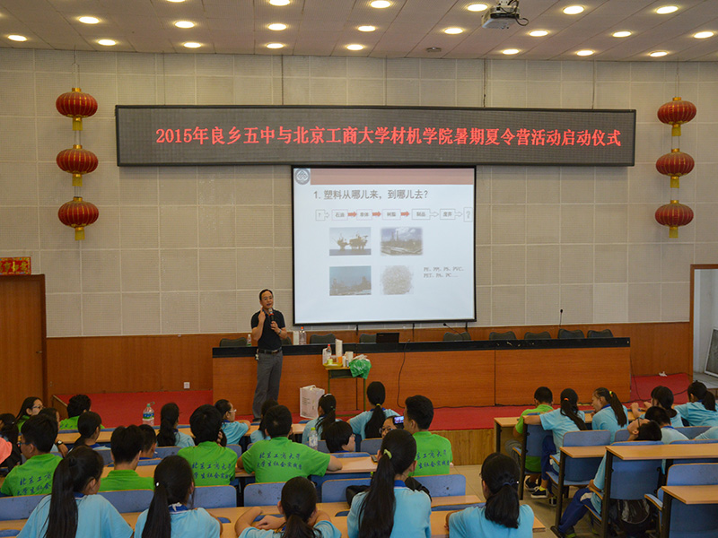 7月14日,學(xué)院翁云宣教授來到良鄉(xiāng)五中,為孩子們帶來了一堂塑料知識(shí)的科普講座。翁教授引用生活實(shí)例,告訴了同學(xué)們塑料的起源、作用、以及在使用中是如何對(duì)環(huán)境造成危害的,同時(shí)重點(diǎn)講解了生物降解如何減輕塑料對(duì)人類環(huán)境產(chǎn)生的危害。翁教授還為同學(xué)準(zhǔn)備了特別的禮物,這些用玉米制造的一次性杯子和襪子得到了同學(xué)們的喜愛。通過此次講解,同學(xué)們學(xué)會(huì)了用科學(xué)的方法發(fā)現(xiàn)問題、解決問題,培養(yǎng)了自身的創(chuàng)新與實(shí)踐能力。