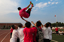 下午,大學(xué)生教師策劃并開展了以比賽闖關(guān)為形式的素質(zhì)拓展活動(dòng),寓教于樂,培養(yǎng)長溝中學(xué)學(xué)生團(tuán)結(jié)一致、克服困難的合作意識(shí)和團(tuán)隊(duì)精神。素質(zhì)拓展由四個(gè)環(huán)節(jié)組成,分別是:鍛煉中學(xué)生思維能力的“解手環(huán)”活動(dòng)、檢驗(yàn)英語水平的單詞大比拼活動(dòng)、促進(jìn)中學(xué)生之間密切配合的“過河搭橋”和“生命長城”活動(dòng)。隨著比賽的進(jìn)行,競(jìng)爭(zhēng)愈發(fā)激烈。夏令營的營員們通過此次活動(dòng)更加體會(huì)到了團(tuán)結(jié)合作、自主思考、迎難而上的樂趣。