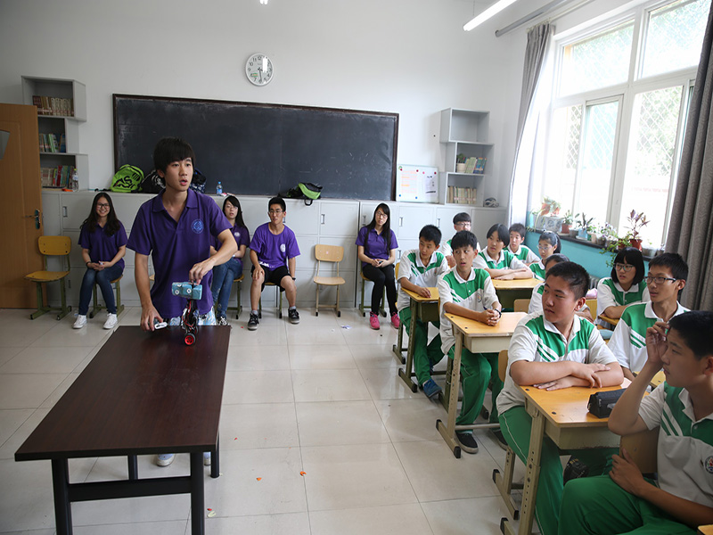 手工課上,大家分成小組,每組由一名老師帶領(lǐng)著進(jìn)行了手工展示,既有合作又有競(jìng)爭(zhēng)。英語課上,精彩的英語短劇、優(yōu)美的英文詩歌、動(dòng)聽的英文歌曲給學(xué)生營造了一種真實(shí)生動(dòng)的學(xué)習(xí)氛圍。科學(xué)創(chuàng)新課上,小老師們?yōu)橥瑢W(xué)們展示了由科技協(xié)會(huì)制作的wifi智能插座和機(jī)器車,并詳細(xì)講解了制作原理。隨后就機(jī)器人的發(fā)展、分類以及功能進(jìn)行一一的解釋。充滿活力和吸引力的課堂展示為同學(xué)們打開了一扇與眾不同的心靈天窗,讓同學(xué)們見識(shí)到了科技的力量,對(duì)大學(xué)生活充滿了無限的向往。
