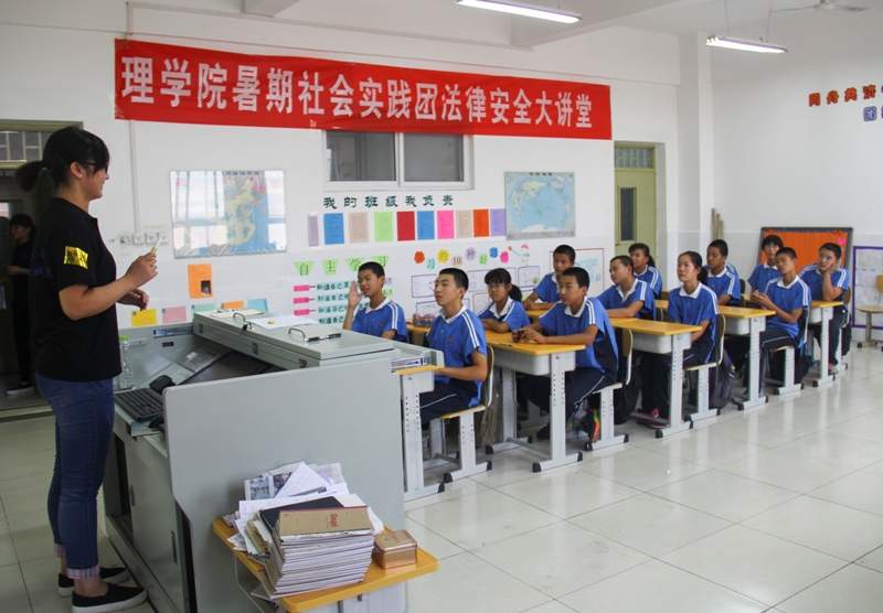 在這幾天的授課之余,實(shí)踐團(tuán)準(zhǔn)備了一次法律常識(shí)的講座,主講人以貼近中學(xué)生的“未成年人保護(hù)法法律講堂”為題為同學(xué)們上了一節(jié)深入、有意義的講座。在講述過程中,通過豐富的案例教給孩子們自我防范的方法,加強(qiáng)未成年用法律維護(hù)自身合法權(quán)益的意識(shí)。