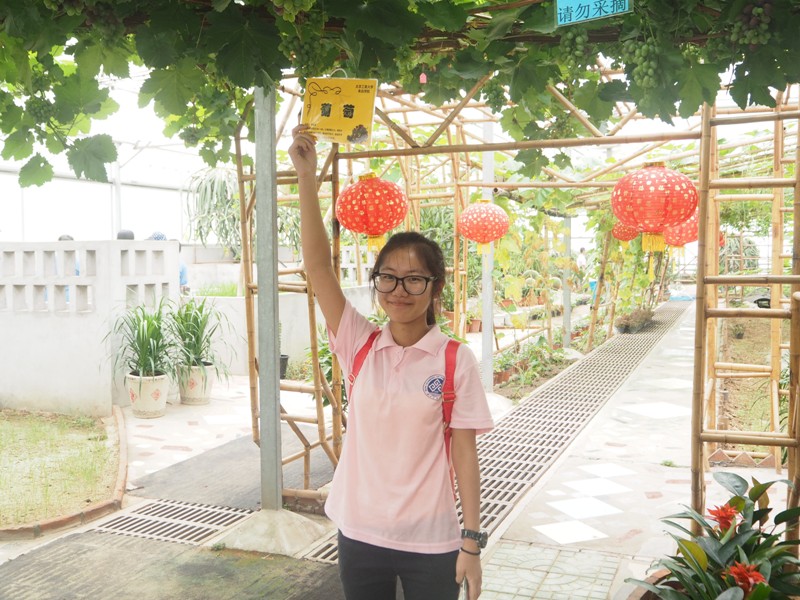 基層調(diào)研和科普宣講活動(dòng)結(jié)束后,實(shí)踐團(tuán)又馬不停蹄地趕到韓村河蔬菜種植基地。隨著新農(nóng)村的建設(shè),韓村河的村民們讓蔬菜大棚也有了翻天覆地的變化。暑期社會(huì)實(shí)踐活動(dòng)前,實(shí)踐團(tuán)同學(xué)總結(jié)了去年實(shí)踐過程中發(fā)生的蔬菜大棚中植物難以辨認(rèn)的問題,提前查找資料并制作了精美的植物名牌。同學(xué)們經(jīng)過認(rèn)真觀察和仔細(xì)尋找后,一些花卉、水果也被實(shí)踐團(tuán)掛上了相應(yīng)的名牌,像葡萄、火龍果、黃瓜等。通過這次的參觀活動(dòng),大家不僅開拓了眼界,也利用自己所學(xué)的專業(yè)知識(shí)為當(dāng)?shù)厥卟舜笈锝ㄔO(shè)貢獻(xiàn)出自己的力量。