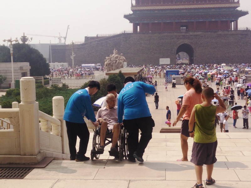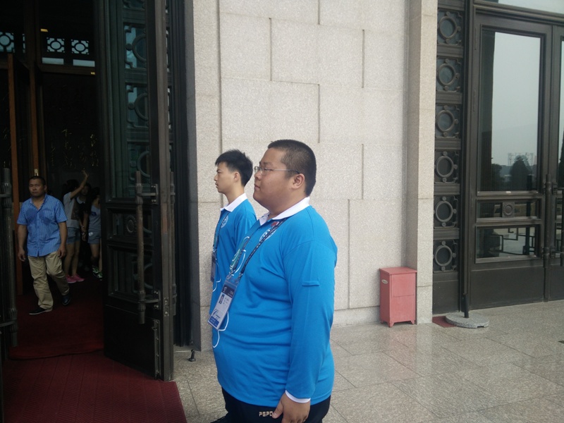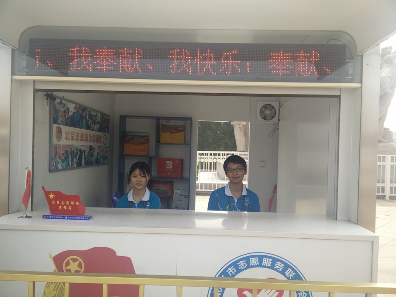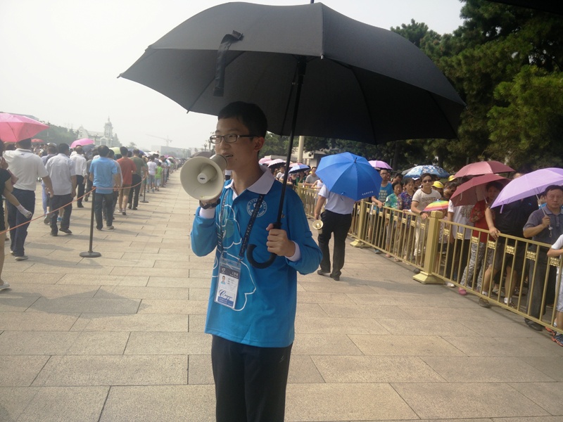 第一天上崗,雖然天氣有些燥熱,志愿者仍堅持以飽滿的精神狀態堅守崗位,圓滿完成了本崗位的工作。前來瞻仰毛主席紀念堂的群眾有數萬人之多,外圍引導崗的11位同學配合紀念堂工作人員引導瞻仰群眾有序排隊、等候、瞻仰,維護瞻仰隊伍的良好秩序,宣傳瞻仰參觀注意事項,耐心解答瞻仰群眾相關問題,經過志愿者的努力,排隊隊伍更加有序前進。扶老助殘崗的志愿者們協助老年人、行動不便人士、殘障人士進出紀念堂,志愿者們雖然很辛苦,但也感覺到了助人為樂的幸福。獻花臺引導崗的志愿者們引導瞻仰群眾有序獻花,維護秩序,耐心提醒大家“不要拍照,不要大聲說話,給主席最大的尊重”,及時整理獻花臺,營造了瞻仰現場莊重、肅穆的氛圍。每一個崗位上的同學都十分用心的對待每一位瞻仰群眾。