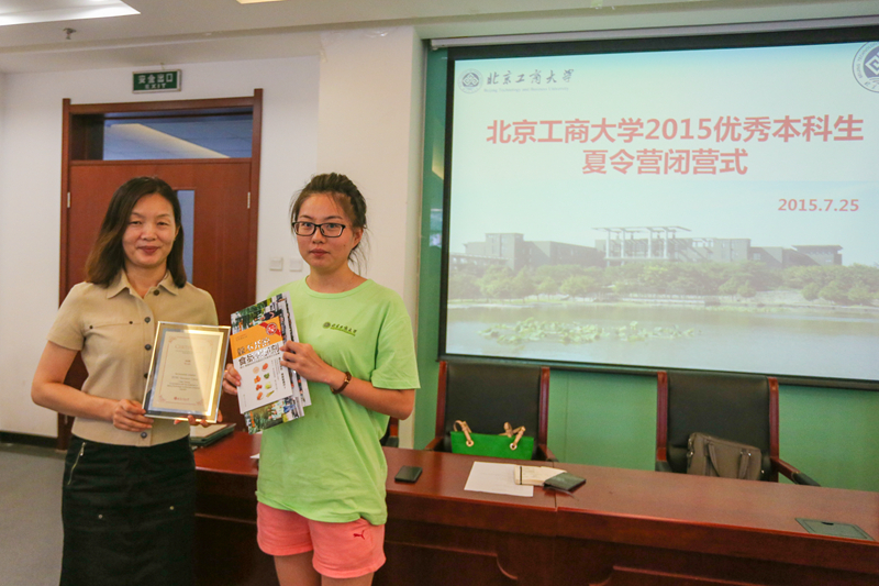 閉營儀式上,食品學院李秀婷主任表示,這是我校第一次舉辦這樣的夏令營活動,老師們都投入了大量的心血,研究生志愿者們也全身心的付出。營員們也都感受到了學校的包容、深度、內(nèi)涵和期望。七天的夏令營活動,每一位同學都投入了自己最大的熱情。師生相處融洽,他們上進又滿懷希望,給老師們留下了深刻的印象。她給予了同學們殷切希望:“希望以后同學們不僅僅作為北工商的校友,更能成為朋友。”她還為每一位營員頒發(fā)了結(jié)業(yè)證書并合影留念。王少甲老師作為最受大家歡迎的老師之一也在閉營儀式上發(fā)表了講話,衷心祝愿各位營員們在今后的道路上越走越寬,不論是否成功都希望大家做一個有情懷的人。