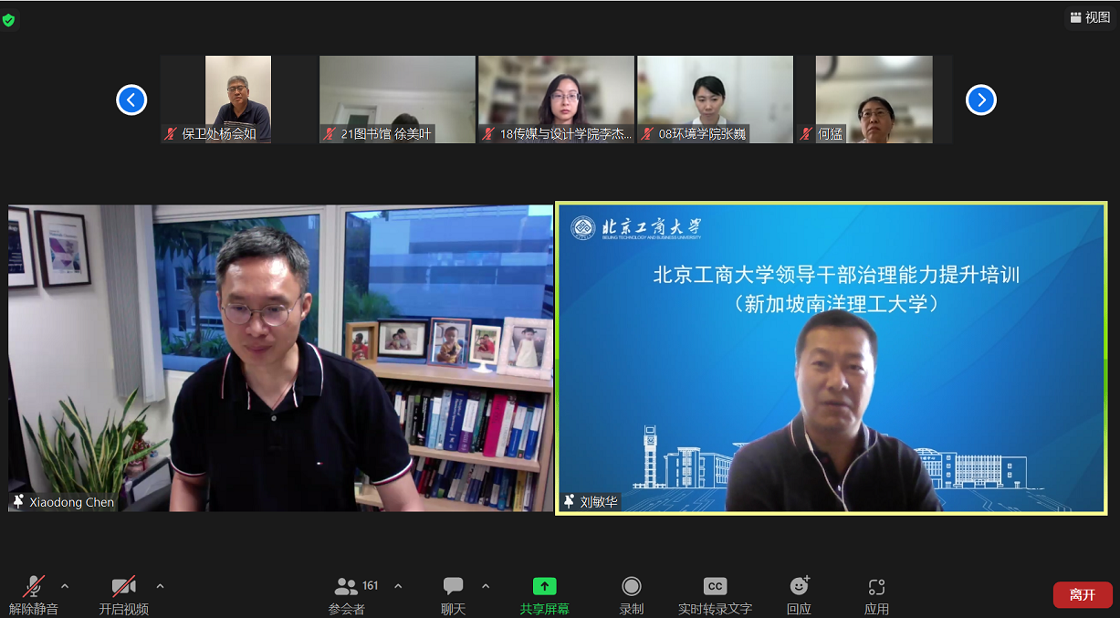 5月25日,學校開展2022年干部治理能力提升系列培訓(新加坡南洋理工大學專場)。邀請到新加坡工程院院士、南洋理工大學柔性器件創新中心主任、人工感知聯合實驗室主任陳曉東教授分享一流學科建設經驗。校領導、全體中層干部參會。會議由黨委常委、副校長劉敏華主持。