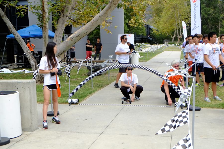 彈力方程式賽車國際設(shè)計錦標(biāo)賽始創(chuàng)于美國藝術(shù)設(shè)計中心學(xué)院工業(yè)設(shè)計專業(yè)研究生經(jīng)典課程,它要求學(xué)生團(tuán)隊用16英尺的橡皮筋作為唯一動力,開展遠(yuǎn)程遙控車輛的設(shè)計并進(jìn)行比賽。本次決賽共有14支車隊參賽,其中11支車隊的隊員來自美國藝術(shù)設(shè)計中心學(xué)院等美國高校的工業(yè)設(shè)計專業(yè)的研究生。總決賽分預(yù)賽和決賽兩個階段進(jìn)行,我校“夢之隊”以優(yōu)異的成績脫穎而出,順利通過預(yù)賽,闖入40米拉力、爬坡競速、8字障礙三場單項賽的決賽,并在決賽中奪得爬坡競速賽第一名的優(yōu)異成績。