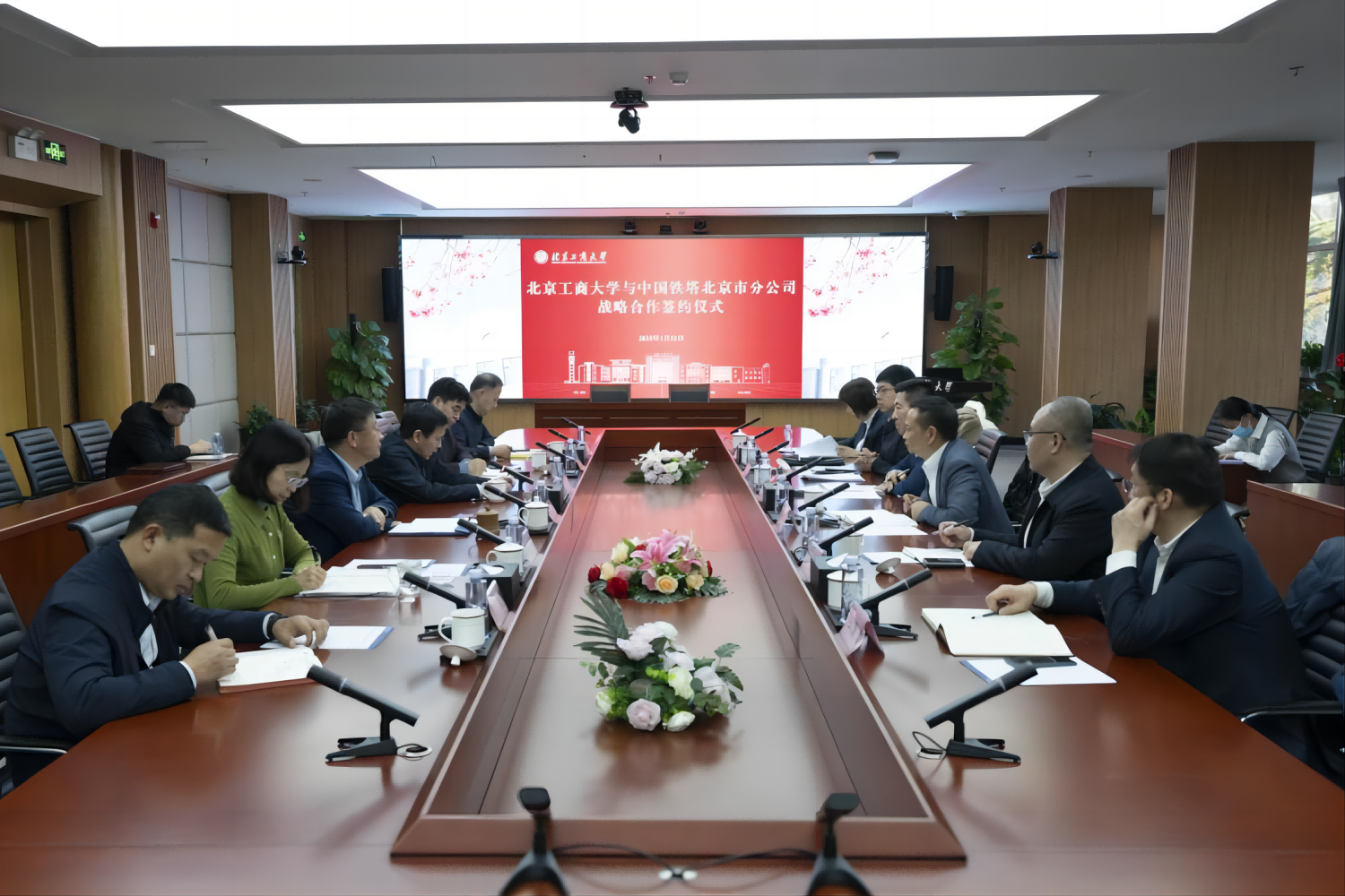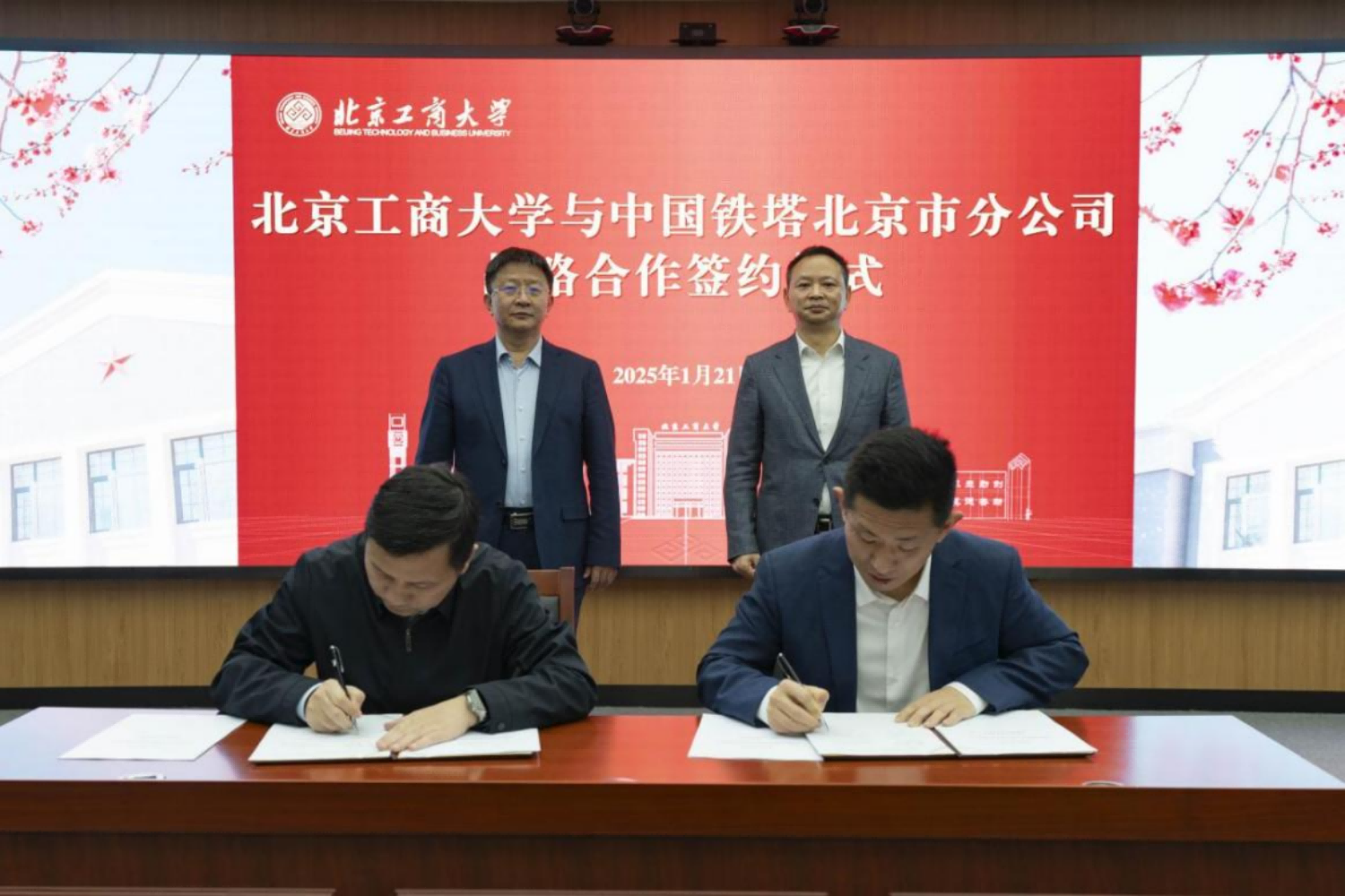 1月21日,北京工商大學(xué)-中國鐵塔股份有限公司北京市分公司戰(zhàn)略合作簽約儀式在阜成路校區(qū)舉行。中國鐵塔北京市分公司黨委書記、總經(jīng)理耿時(shí)敏,黨委委員、副總經(jīng)理程繼偉;校黨委副書記、校長郭建華,黨委常委、副校長寇紅江出席儀式。儀式由寇紅江主持。