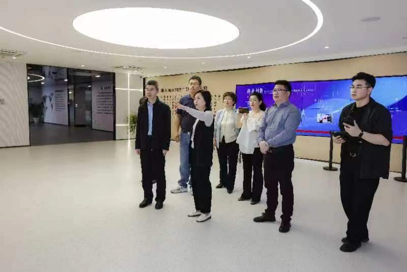 毛新述一行首先調(diào)研了蘇州灣數(shù)字藝術館。這是一座集數(shù)字藝術展覽、科技創(chuàng)新、文化交流于一體的現(xiàn)代化文化科技館。整座館總建筑面積約14000平方米,展廳面積約5000平方米,包括2個常設展廳、2個特展廳,并配有公教中心、多功能廳等多業(yè)態(tài)空間,兼具科技、教育、文化、藝術、娛樂,是視覺、聽覺、觸覺的沉浸式體驗。在參觀體驗《靈境——未來靈感世界》《靈眸——瞳趣視界》等展覽的過程中,毛新述與建設方交流了如何規(guī)劃設計、實現(xiàn)全場景數(shù)字化,做到“科技領先、內(nèi)容豐富、體驗極佳、功能多元”,同時圍繞數(shù)字科技與文化融合創(chuàng)新成果展示、以極具創(chuàng)意和交互性的呈現(xiàn)形式創(chuàng)新打造虛實融合的數(shù)字空間和數(shù)字商科人才培養(yǎng)等進行了深入溝通。