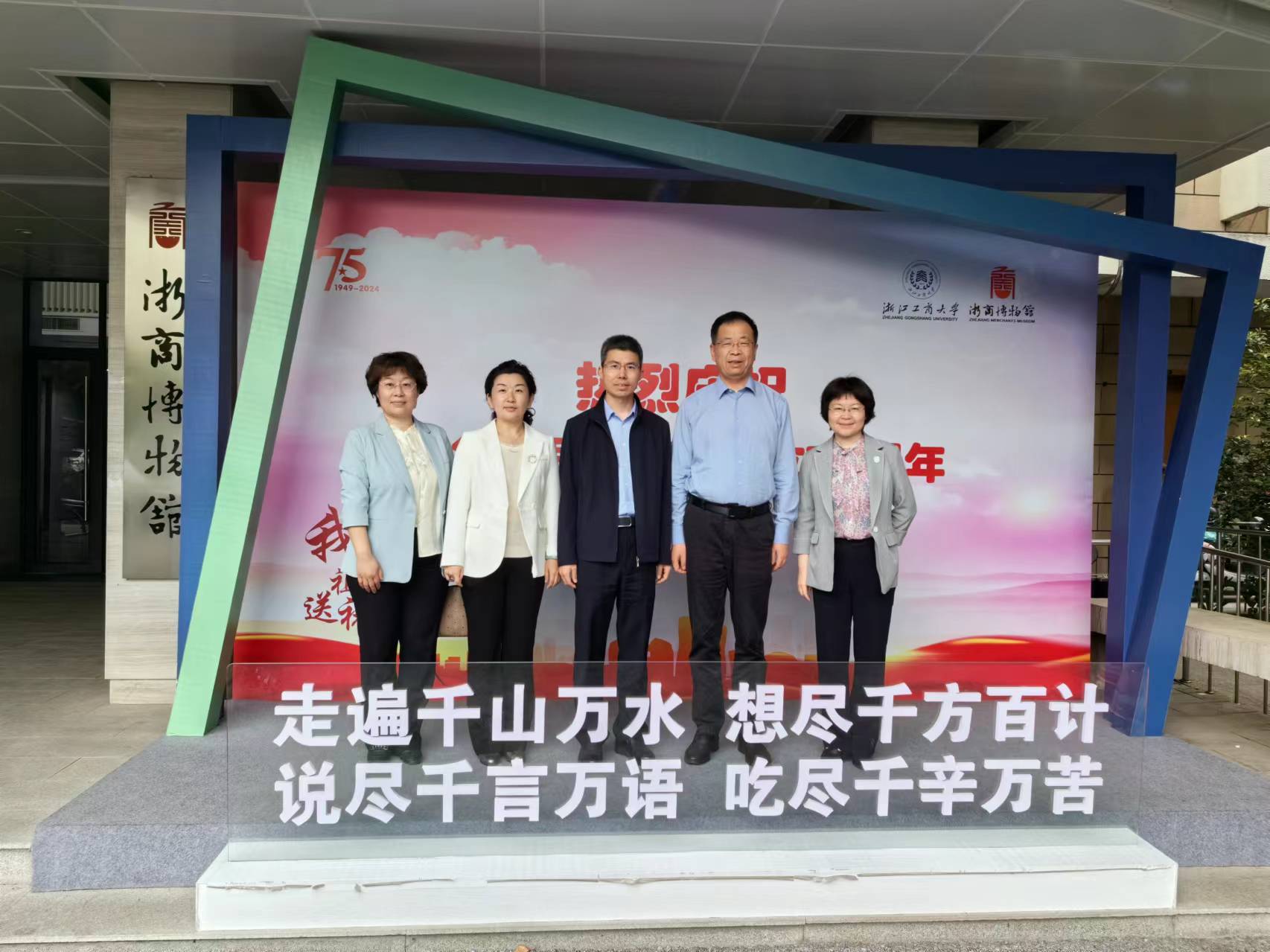 在浙江工商大學,毛新述一行參觀了浙商博物館的常設展區(qū),與浙江工商大學浙商研究院執(zhí)行副院長、浙商博物館館長楊軼清教授,浙商博物館副館長鈄卓珍等進行了座談交流。在認真觀看各展區(qū)的過程中,大家深入了解浙商的歷史、文化傳承和現(xiàn)代發(fā)展,以及浙商博物館的籌建背景和策劃、運營理念及開館十余年來的重大發(fā)展歷程。期間,毛新述對浙商敢為人先、勇于創(chuàng)新、義利并舉的精神表示高度贊賞,對浙商博物館展示傳播浙商文化給予了充分肯定,并在數(shù)字化等方面給予建議。