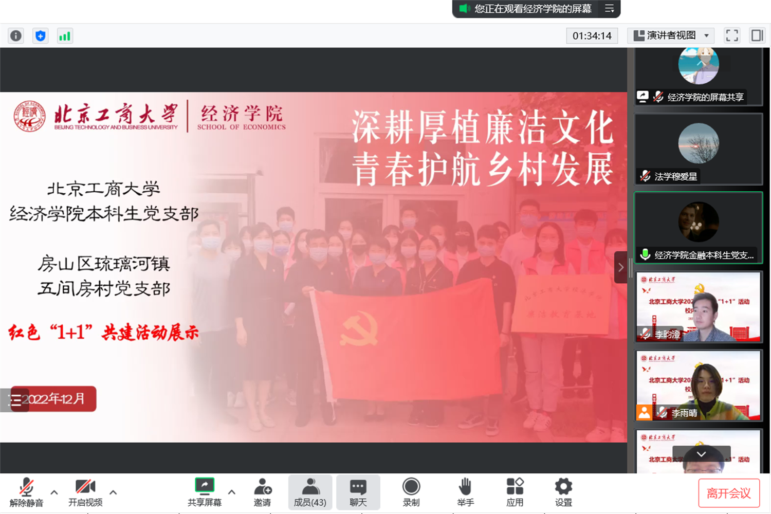 12月28日,學(xué)校舉行2022年紅色“1+1”活動(dòng)校內(nèi)評(píng)審會(huì)。本次評(píng)審會(huì)通過(guò)線上方式舉辦,來(lái)自各學(xué)院的12個(gè)黨支部參加展示和答辯,黨委組織部、學(xué)生工作部、研究生工作部、團(tuán)委負(fù)責(zé)人及各學(xué)院教師代表?yè)?dān)任評(píng)委。