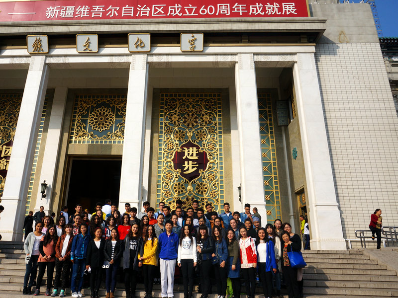 在新疆維吾爾自治區成立60周年之際,根據中共北京市委教育工作委員會相關文件精神,10月19日,學生處副處長徐紅京及學院輔導員帶領我校新疆籍少數民族學生共計71人,參觀了在民族文化宮舉辦的“在祖國的懷抱中——新疆維吾爾自治區成立60周年成就展”。