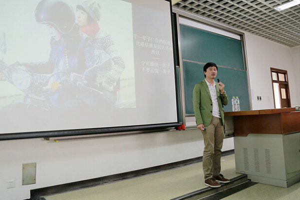 中國4A大師公開課首先由省廣股份北京中心廣告中心副經理兼創意策劃局總經理史小明以《如何不被創意玩》為主題講授第一堂課,從“創意人的死法”出發,指出創意的禁忌,進而也讓同學們明白了什么是好的創意。藍色光標數字營銷機構副總裁、首席內容官彭駿成先生站在數字營銷的角度,分析了創意應該如何去做,他提出的“鬼扯”創意論也引起了同學們的關注。在他看來,在數字時代,一個好的創意不僅需要將兩個不相關的事物巧妙地聯系在一起,而且也需要激發人們不斷討論與再創意的行為。
