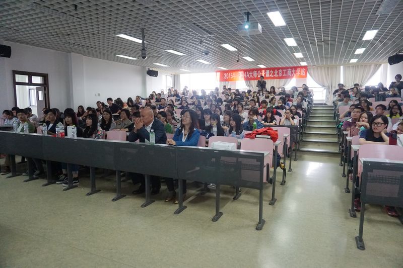 2015中國4A大學生廣告周(北京站)于10月14日走進我校良鄉校區,我校學子聆聽中國4A大師公開課(中國4A是中國商務廣告協會綜合代理專業委員會的簡稱)。中國4A協會理事長、北京電通廣告有限公司常務副總經理李西沙先生、省廣股份北京中心廣告中心副經理兼創意策劃局總經理史小明先生,以及藍色光標數字營銷機構副總裁、首席內容官彭駿成為藝術與傳媒學院的同學們帶來了精彩演講。我校廣告系主任高麗華、專業教師及學生參加了活動。