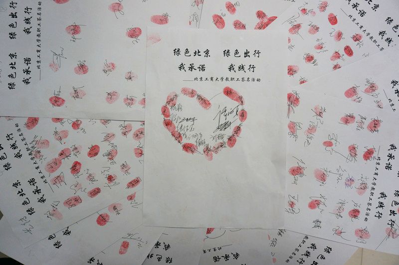 10月21日,學(xué)校工會(huì)舉辦了“綠色北京,綠色出行我承諾,我踐行”教職工簽名活動(dòng)。簽名活動(dòng)得到了廣大教職工的積極響應(yīng),現(xiàn)場熱鬧非凡。老師們紛紛表示為了還北京一片藍(lán)天,同時(shí)為了自己的身體健康,會(huì)堅(jiān)持綠色出行,堅(jiān)持健走。