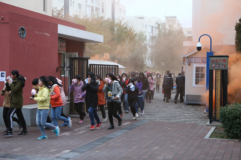 為了持續(xù)推進平安校園建設,進一步做好學校防火安全工作,增強師生員工消防安全意識,提高師生員工安全防范及自救能力,結合“119”防火宣傳和2015年安全教育宣傳實踐月活動,11月11日下午,由保衛(wèi)處、學生處、后勤管理處等部門組織各個學院師生員工在良鄉(xiāng)校區(qū)生活區(qū)進行了大型的消防疏散演練活動。學校黨委副書記張德玉擔任本次演練的總指揮,房山區(qū)公安分局、房山區(qū)消防支隊、拱辰派出所、良鄉(xiāng)高教園區(qū)等單位的領導應邀參加了活動。