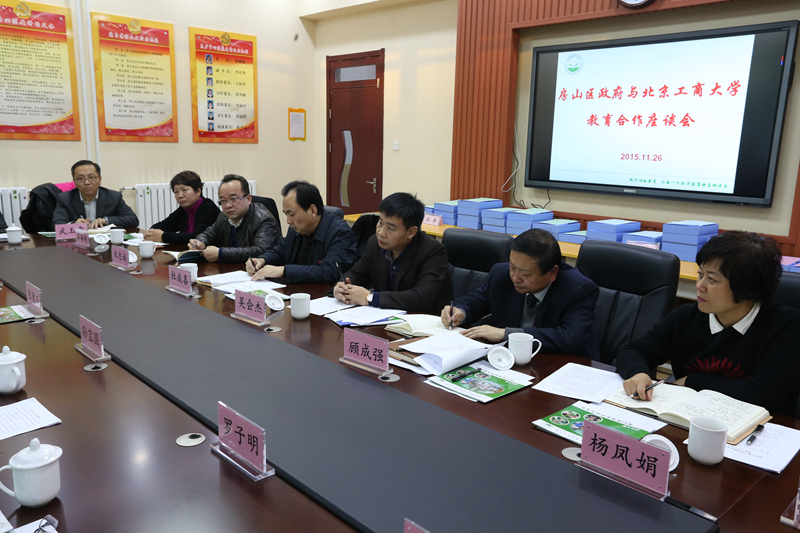 張德玉副書記介紹了我校與良鄉教育合作的情況,特別談到十年來我校通過“十鄉百村千人行”暑期社會實踐活動與房山區中小學開展了非常廣泛的合作,在實踐中大學生得到了鍛煉,中小學生受到了教育,教學相長,雙方均取得很大成績。今年我校暑期社會實踐活動被中宣部、教育部評為第八屆全國高校校園文化建設優秀成果一等獎。張德玉副書記希望通過依托北京工商大學教育資源優勢,可以在師資培訓、藝術教育、社團活動、社會實踐等方面進行更廣泛和深入的合作。