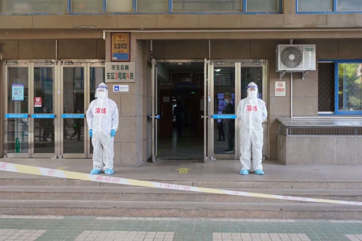 為有效應(yīng)對(duì)當(dāng)前嚴(yán)峻復(fù)雜的新冠肺炎疫情形勢(shì),進(jìn)一步完善應(yīng)急處置流程,提升應(yīng)急處置能力,按照北京市的相關(guān)要求,在學(xué)校疫情防控應(yīng)急封閉管理工作組的統(tǒng)一指揮下,4月26日上午,學(xué)校在阜成路校區(qū)開(kāi)展校園突發(fā)疫情全要素、全流程、多場(chǎng)景實(shí)戰(zhàn)應(yīng)急演練。海淀區(qū)衛(wèi)健委副主任鄭洋、甘家口街道辦事處副主任崔瑋、區(qū)生態(tài)環(huán)境局土壤和固廢科副科長(zhǎng)王修花、甘家口派出所社區(qū)民警王高波,我校校領(lǐng)導(dǎo)黃先開(kāi)、孫寶國(guó)、李中奇、鄭文紅,以及各專(zhuān)班成員單位負(fù)責(zé)人參加演練。李中奇、鄭文紅擔(dān)任總指揮,學(xué)校辦公室主任王曉華主持。