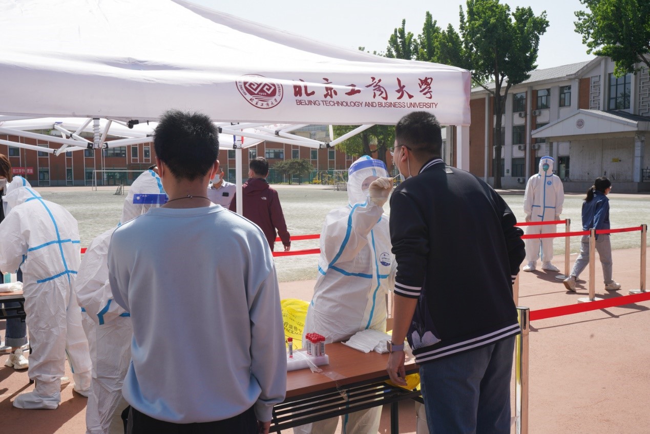 面對(duì)嚴(yán)峻復(fù)雜的疫情形勢(shì),我校編制了《北京工商大學(xué)突發(fā)新冠肺炎疫情應(yīng)急處置預(yù)案》,并多次進(jìn)行桌面推演。本次實(shí)戰(zhàn)演練以我校一學(xué)生接到屬地疾控中心電話,反饋其核酸檢測(cè)呈陽(yáng)性為背景展開(kāi),共設(shè)計(jì)信息上報(bào)及指令下達(dá)、校園封閉及所在樓宇封閉、信息流調(diào)、疫情研判、環(huán)境消殺、網(wǎng)格化管理、全員核酸檢測(cè)等七個(gè)場(chǎng)景。接到疫情報(bào)告后,李中奇宣布演練開(kāi)始。