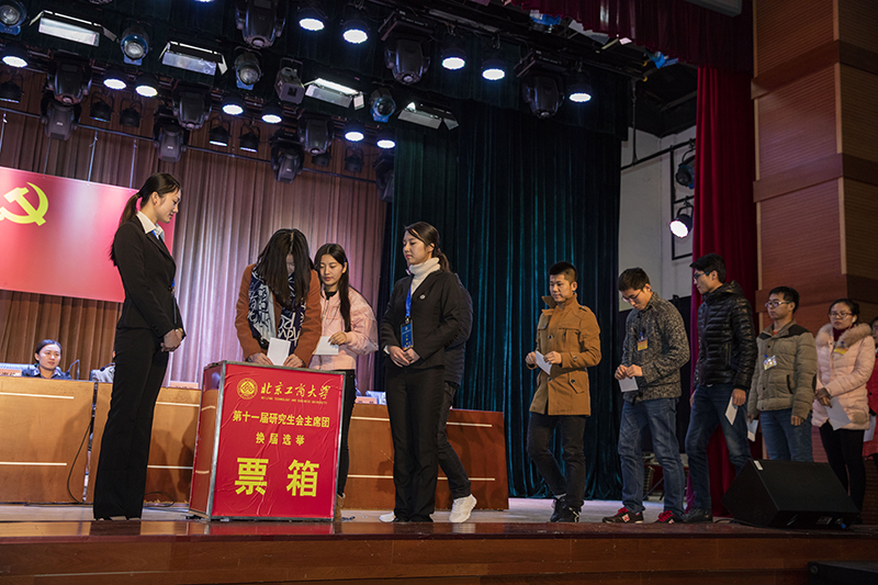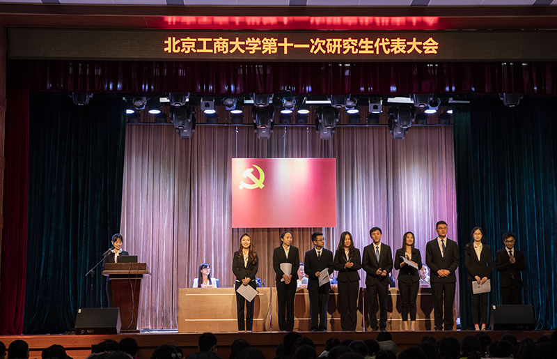 會(huì)議聽取、審議并表決了《北京工商大學(xué)第十一次研究生代表大會(huì)代表資格審查報(bào)告》、《關(guān)于修改<研究生會(huì)章程>的報(bào)告》、《北京工商大學(xué)第十屆研究生會(huì)委員會(huì)工作報(bào)告》、《北京工商大學(xué)第十屆研究生會(huì)委員會(huì)經(jīng)費(fèi)使用報(bào)告》。大會(huì)經(jīng)由第十一屆研究生會(huì)主席團(tuán)候選人競(jìng)選展示,通過代表無記名投票的方式,差額選舉產(chǎn)生了我校第十一屆研究生會(huì)主席團(tuán)成員,他們是介樂觀(法/馬學(xué)院)、宮俐莉(食品學(xué)院)、王兵(計(jì)算機(jī)與信息工程學(xué)院學(xué)院)、肖博仁(經(jīng)濟(jì)學(xué)院)、趙璐(經(jīng)濟(jì)學(xué)院)、楊昊琳(商學(xué)院)、張俊(商學(xué)院)、雷雪妍(藝術(shù)與傳媒學(xué)院)。