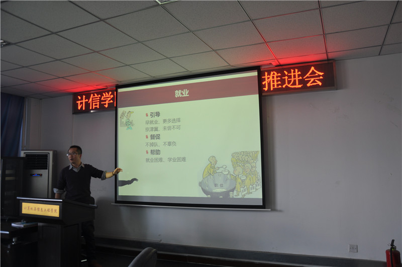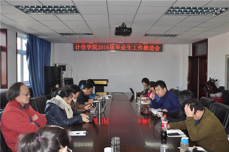 12月2日,計信學院在阜成路召開畢業生就業部署推進會,針對2016屆畢業生相關工作進行研究和部署。院領導陳誼、蔡強、廉小親、劉新亮及全體系主任、副主任、12級班主任參會。學院黨委副書記張凱偉主持會議。