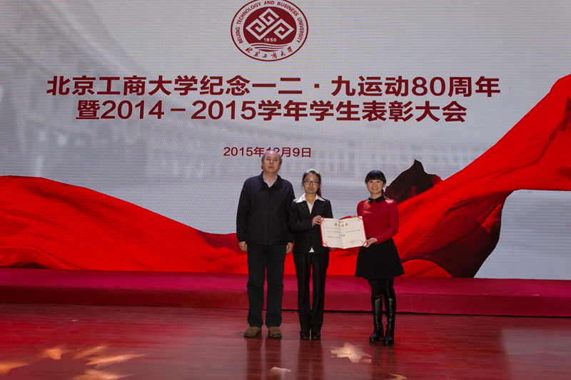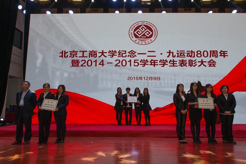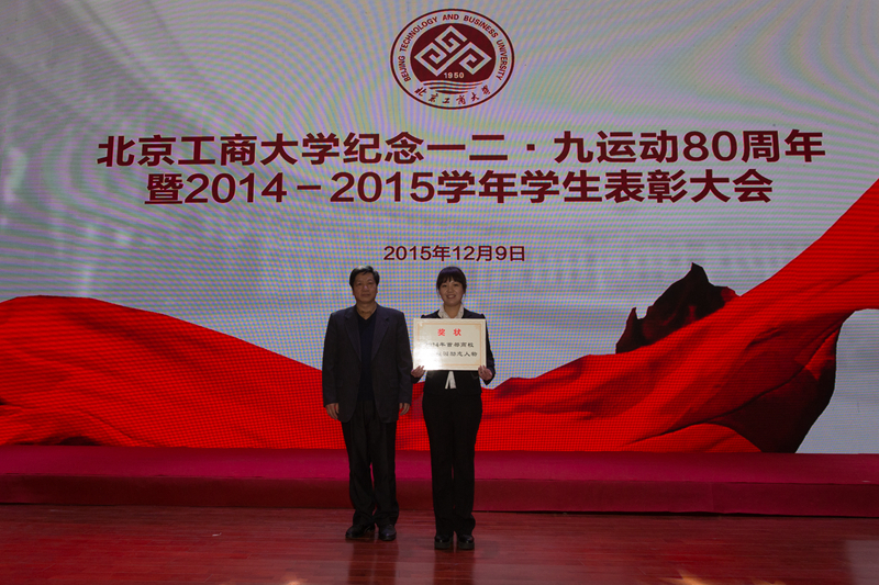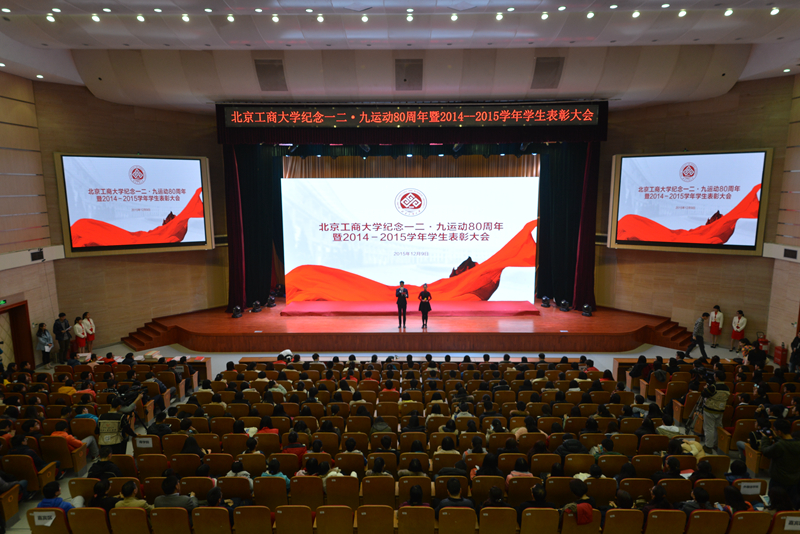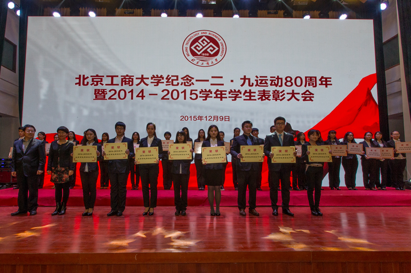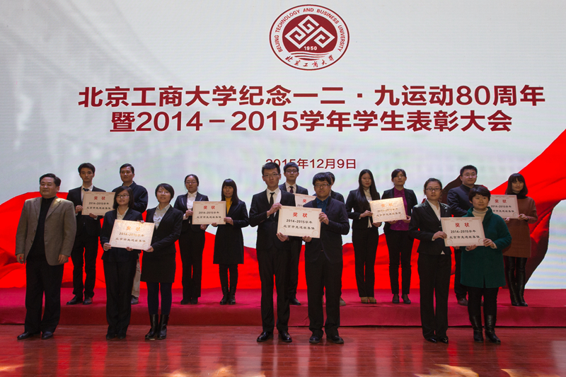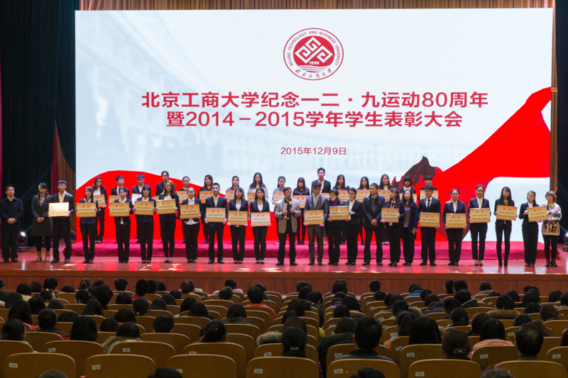 為引導和激勵大學生繼承和弘揚愛國精神,表彰優秀,樹立榜樣,12月9日,學校紀念一二•九運動80周年暨2014-2015學年學生表彰大會在良鄉校區召開,會上表彰了9類獲得市級以上獎項的學生集體和個人。校長孫寶國院士、黨委副書記張德玉、副校長謝志華、方德英出席活動,并與嘉賓一同為獲獎學生頒獎。相關職能部門負責人、各學院黨政領導、教師代表、市級獲獎學生代表、2015級本科生代表參加表彰會。