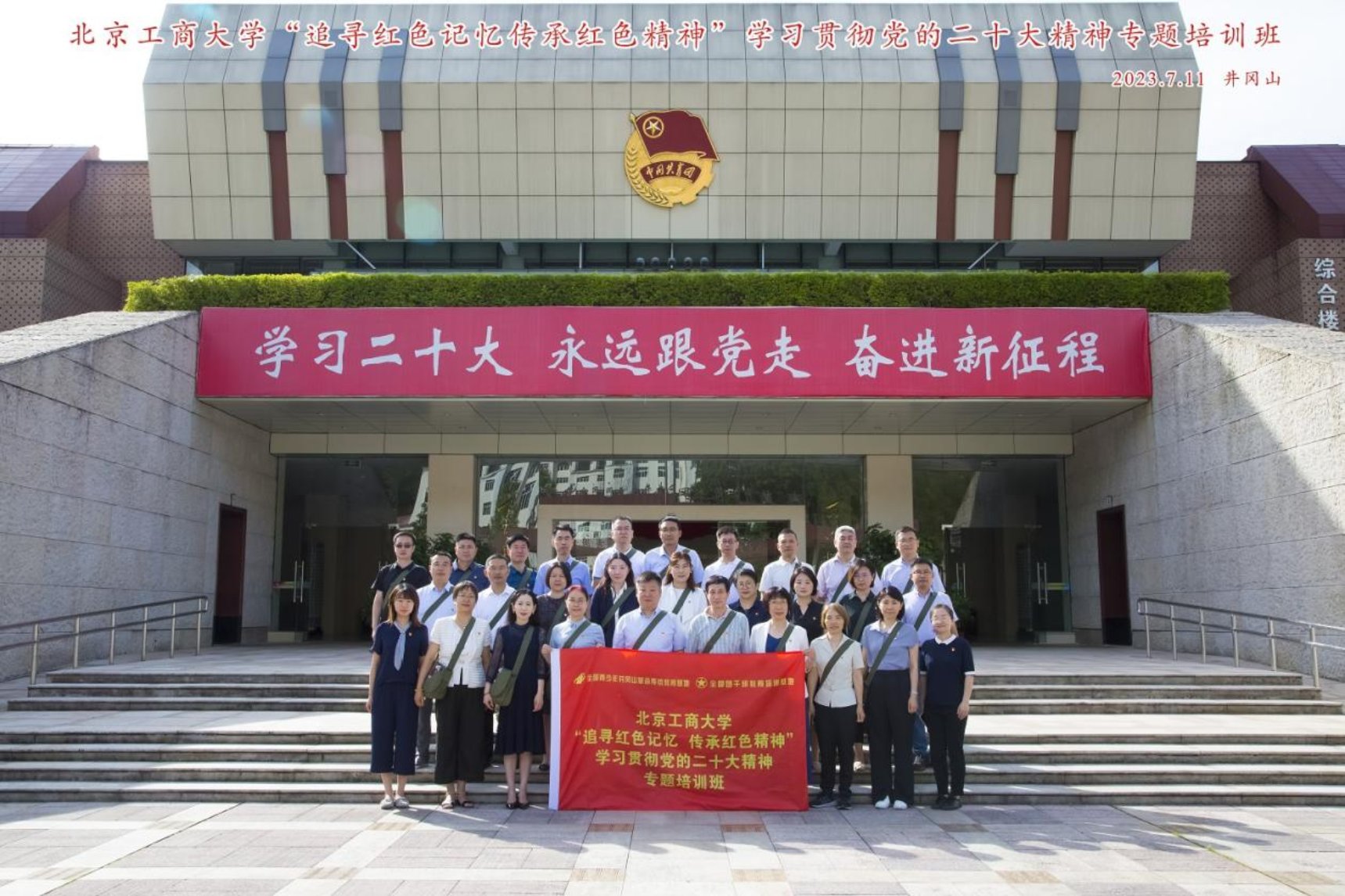 為全面貫徹黨的二十大精神,深入開展學習貫徹習近平新時代中國特色社會主義思想主題教育,進一步提升中層干部的政治素養和治理能力,按照學校2023年度干部教育培訓計劃,7月10日至15日,中層干部“追尋紅色記憶 傳承紅色精神”學習貫徹黨的二十大精神專題培訓班在紅色革命圣地井岡山開班。學校黨委常委、副校長左敏,學校原黨委副書記王偉帶隊,部分黨政職能部門、二級學院中層干部近30人參加培訓。