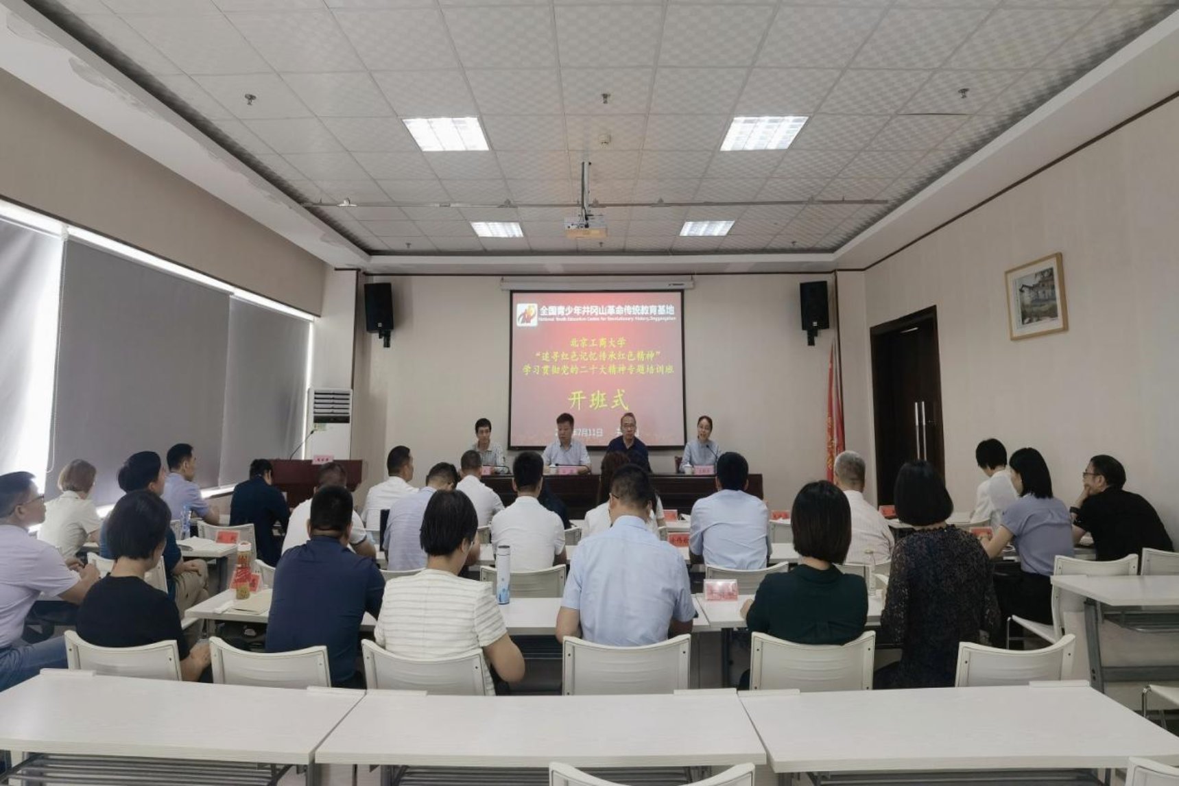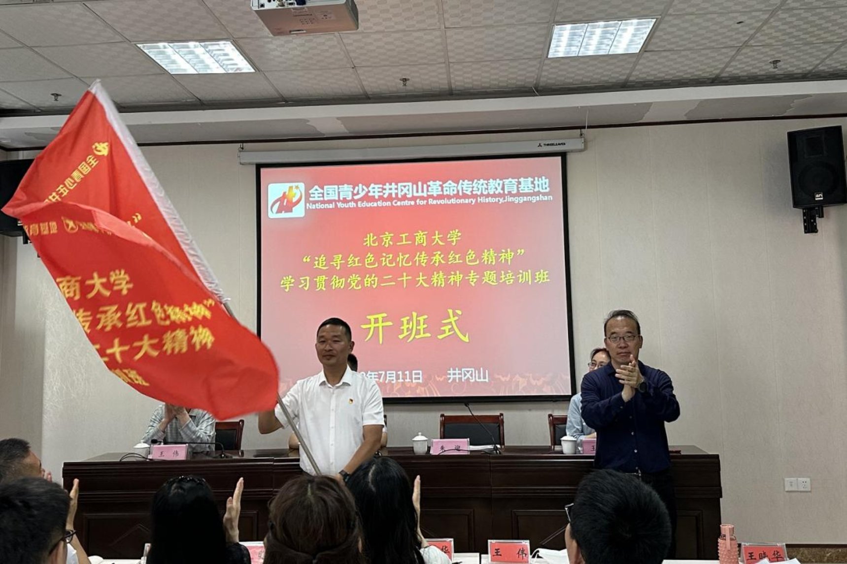 7月11日上午,培訓班開班儀式在團中央井岡山全國青少年革命傳統教育基地舉行。基地管理中心黨委委員、副主任朱迎致辭并為培訓班授班旗。左敏作開班動員講話。
