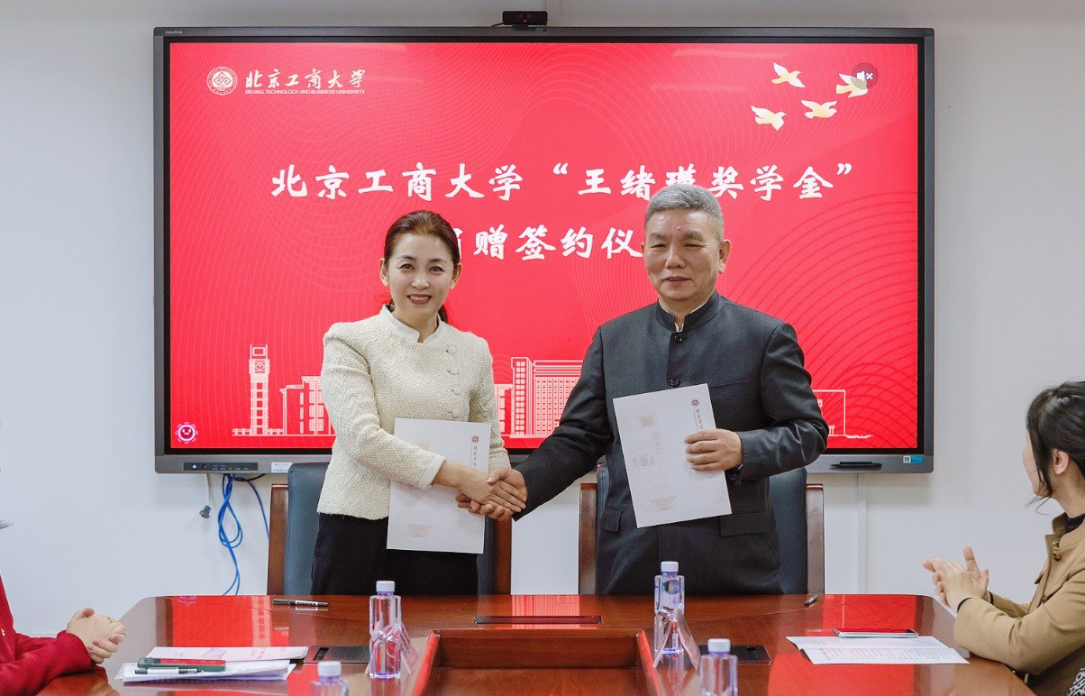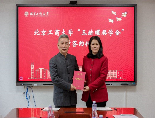 隨后,徐丹丹代表教育基金會與王緒瑾教授簽訂了捐贈協(xié)議。詹新宇代表學(xué)院接受捐贈支票,張春萍代表教育基金會向王緒瑾教授頒發(fā)了捐贈證書。