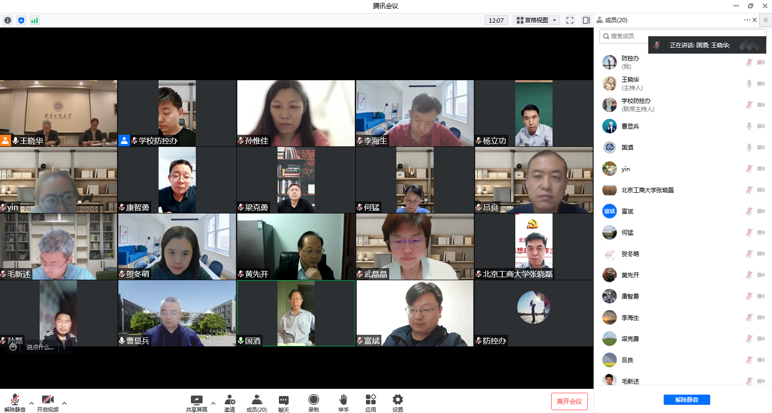 5月1日,學校召開臨時管控工作領導小組會議,傳達落實北京市會議精神,總結近期工作,就下一步工作進行安排部署。臨時管控工作領導小組總指揮,黨委書記黃先開,黨委副書記、校長孫寶國,現場總指揮、黨委副書記李中奇出席會議。各專班成員線上參會。