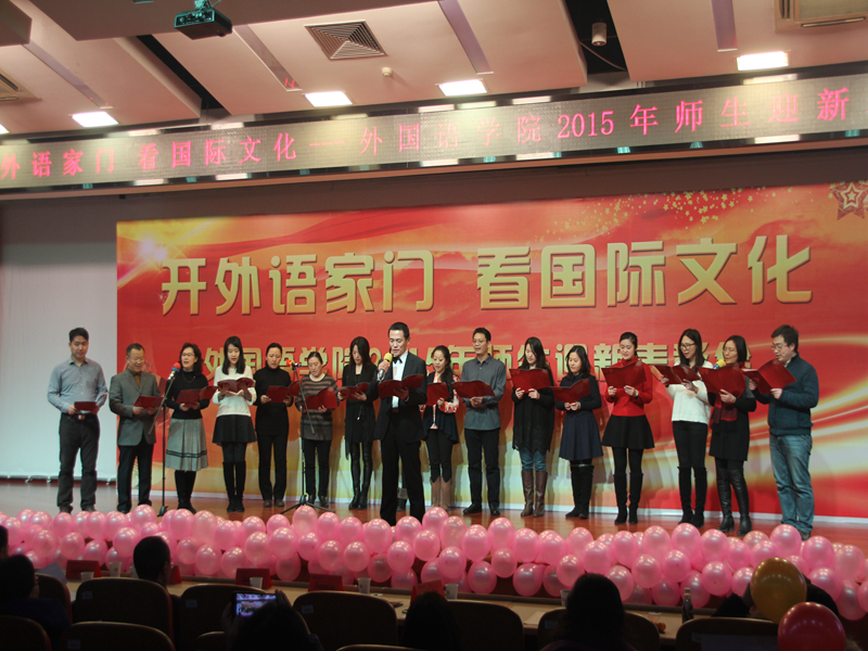 12月23日,“開外語家門 看國際文化”外國語學院2015年度師生迎新表彰會在良鄉校區舉行。校紀委書記邱曉平出席大會。外國語學院院長劉紅艷,黨總支書記羅朝能,副院長楊增成、苗天順,黨總支副書記任金晶及全體導師、專業教師、輔導員、班主任、本科生和研究生出席大會。
