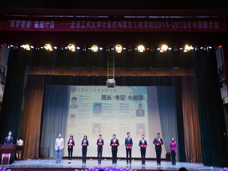 在學(xué)院優(yōu)秀學(xué)生代表14研竇超發(fā)言后,學(xué)院教師代表、共建單位代表、自80校友代表分別為獲得各級(jí)各類獎(jiǎng)學(xué)金、獲得全國及北京市各項(xiàng)學(xué)科競(jìng)賽類獎(jiǎng)項(xiàng)的團(tuán)體和個(gè)人、學(xué)院之星、學(xué)院星之隊(duì)等頒獎(jiǎng)。學(xué)院黨委書記陳誼、院長蔡強(qiáng)為第三屆計(jì)信學(xué)院院長(書記)小助手頒發(fā)了聘書。