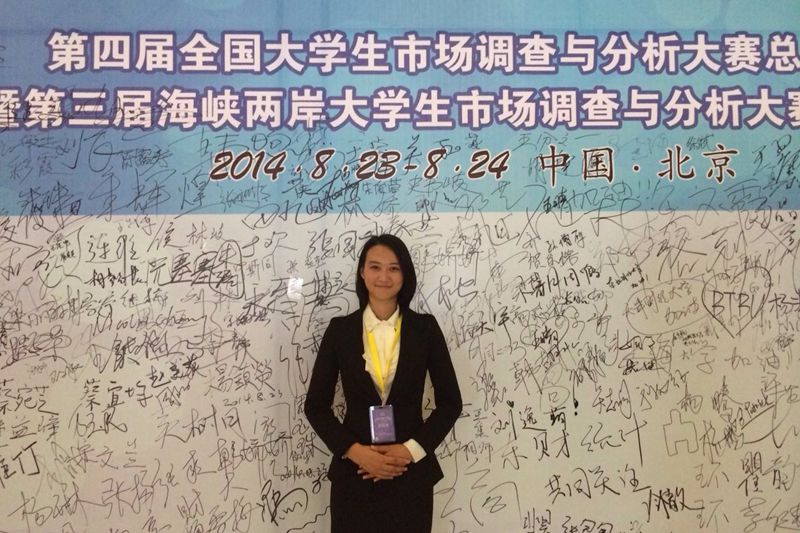 令她印象深刻的是在第四屆全國大學生市場調查大賽中,她所在團隊的參賽論文是《北京市防霾口罩市場的調查報告》,為了能夠獲取更加準確的數據,獲得更加客觀的結論,從制作分發市場調查問卷,搜集數據,到創建數學模型,利用多元分析統計方法,再到SPSS軟件的學習及應用,她們從大二的寒假一直忙到了大三開學前的暑假。那段緊張而忙碌的日子中,她和隊友們連續十天夜里兩點鐘睡,早上八點開始討論,還要在課余時間趕到阜成路校區讓輔導老師審閱批改,風云非但沒有覺得痛苦,反而認為是一種值得。