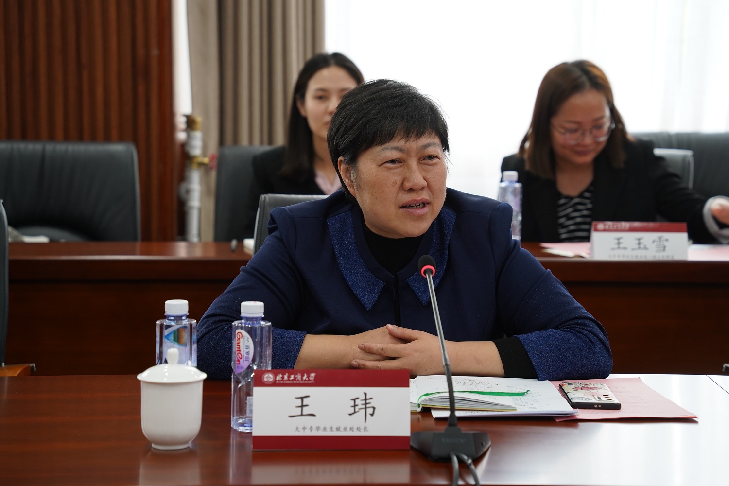楊林介紹了學校畢業生就業情況,并對各區生源情況進行詳細分析。各區人社局負責人分別介紹了本區就業工作推動和開展情況,并對有關就業政策進行了解答,希望與學校各學院加強合作聯系,千方百計為畢業生解決就業難題。石松與各學院相關就業負責人就大學生就業現狀及面臨的就業難點等問題與人社局相關部門負責人進行了充分交流和溝通。王瑋對學校“立足北京、服務首都”為北京市培養和輸送高質量人才表示了肯定,她表示要進一步加強各區支撐產業與學校特色專業的精準對接,持續推進資源匯聚,精準對接畢業生需求,提升服務效能。