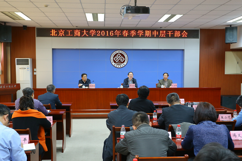 2月25日,學校在阜成路校區召開春季學期中層干部會議,部署學校2016年各項工作。全體校領導、全體中層干部參加了會議,會議由黨委副書記張德玉主持。
