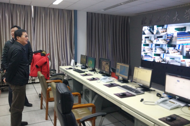 李朝鮮副校長(zhǎng)首先來到教三樓教室,現(xiàn)場(chǎng)查看了衛(wèi)生和教學(xué)設(shè)備運(yùn)行情況。隨后一行人來到教一樓多媒體總控室。在總控室顯示器幕墻上,各教室情況一覽無余,最大限度地提高了管理效率。在聽取了各部門相關(guān)工作情況匯報(bào)后,他對(duì)后勤管理處和網(wǎng)絡(luò)中心新學(xué)期開學(xué)服務(wù)保障工作給予了充分肯定,并提出了要求:堅(jiān)持做好后勤服務(wù)各環(huán)節(jié)的精細(xì)化管理工作,及時(shí)維護(hù)好教學(xué)設(shè)備,維護(hù)好干凈整潔的教室環(huán)境和美麗校園,不斷提升師生對(duì)教學(xué)服務(wù)的滿意度。