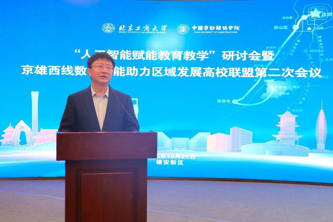 京雄西線數字智能助力區域發展高校聯盟成立于2024年9月,由我校和中國勞動關系學院牽頭發起,聯合京雄西線房山區、豐臺區、保定市等京津冀重要腹地的13所高校共同組建,旨在通過數字技術與智能手段,推動教育、產業、區域發展的深度融合。本次會議在鞏固前期合作成果基礎上,進一步聚焦人工智能賦能教育實踐路徑,推動京雄區域教育資源共享、科研成果轉化與人才協同培養。