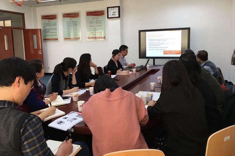 講座之后圖書館、科技處、高教研的與會人員分別就ESI、Incites的選刊標準、引文影響力、基線的計算方法、高被引論文、熱點論文、期刊分區、目標高校比較等問題進行了交流討論。