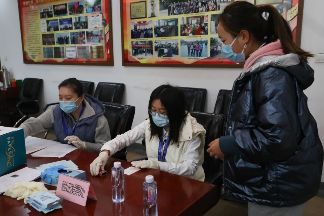 各投票站入口處嚴格執行測溫、佩戴口罩、手套等防疫要求,等待投票的選民在工作人員的引導下,規范入場、保持距離,在驗證發票處核驗身份后完成登記、發票、寫票、投票等環節。解說處工作人員耐心地向選民詳細解說寫票的方法與注意事項,代書處為有書寫困難的選民提供代寫服務。選民按照規劃路線有序行進,從不同通道進出投票站,有效避免了人員聚集和交叉。