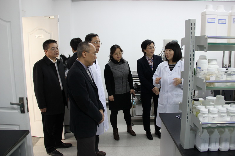 副校長張耘、紀委書記邱曉平考察了實驗室的環境、儀器設備及運行情況,并重點考察了皮膚醫學養生生實驗室、化妝品植物原料研發小試和中試實驗室、化妝品配方實驗室、化妝品功效與安全評價實驗室等特色實驗室。