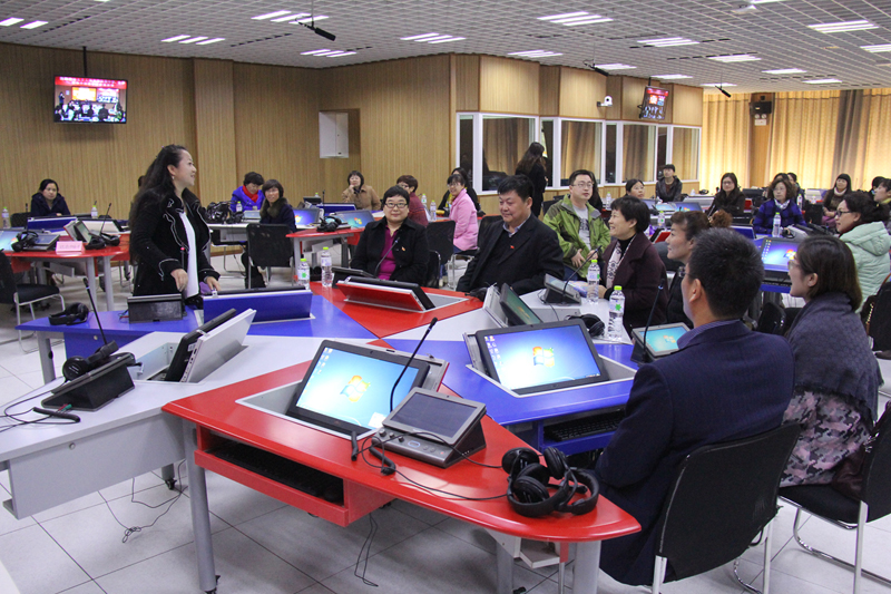 3月15日,我校附屬中學(xué)校長隗合春、附屬小學(xué)校長李慶華及30余名中、小學(xué)英語教師蒞臨我校良鄉(xiāng)校區(qū)外國語學(xué)院語音實(shí)驗(yàn)室參觀座談,外語學(xué)院院長劉紅艷、教學(xué)副院長苗天順、黨總支副書記任金晶以及各系部主任參加座談。
