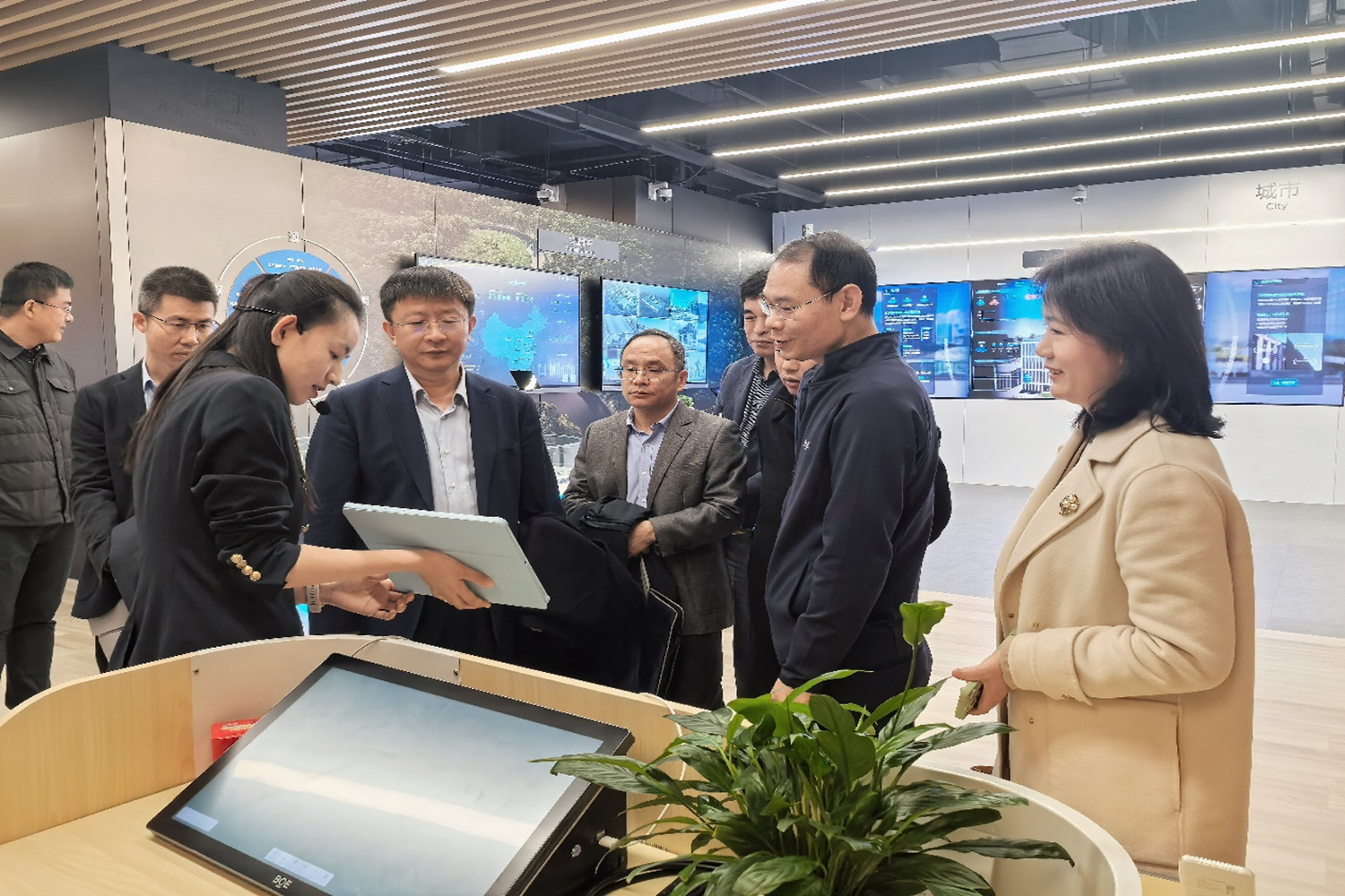 京東方集團(tuán)是全球創(chuàng)新型物聯(lián)網(wǎng)公司和全球半導(dǎo)體顯示產(chǎn)品龍頭企業(yè)。郭建華一行首先參觀了京東方技術(shù)創(chuàng)新中心展廳,全面了解京東方在信息交互、智慧校園、數(shù)字藝術(shù)、視覺健康等多應(yīng)用場(chǎng)景的技術(shù)創(chuàng)新和在液晶顯示、物聯(lián)網(wǎng)業(yè)務(wù)創(chuàng)新等方面的最新成果,體驗(yàn)京東方將AI深度融入制造和服務(wù)的智能交互創(chuàng)新產(chǎn)品,感受京東方“屏之物聯(lián)”戰(zhàn)略推動(dòng)企業(yè)高質(zhì)量發(fā)展、引領(lǐng)行業(yè)智能化轉(zhuǎn)型的生動(dòng)實(shí)踐。