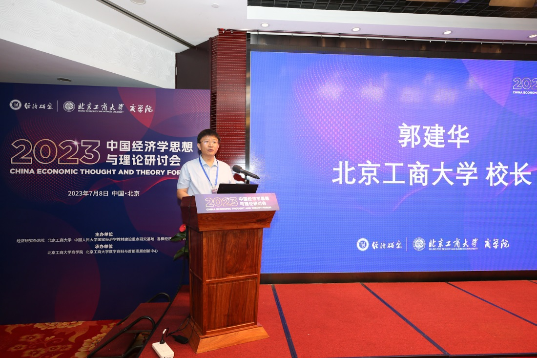 開幕式上,黨委副書記、校長郭建華教授在致辭中對各位參會的專家和代表表示熱烈歡迎和感謝。他指出,經濟建設是黨和國家的中心工作。黨的十八大以來,習近平總書記深入洞察中國的具體國情和經濟發展實踐,提出了經濟發展的一系列重大論斷,科學總結了經濟發展的歷史規律,形成和發展了習近平經濟思想,具有重大的理論和現實意義。深度挖掘習近平經濟思想的精髓,更好解讀中國特色社會主義建設,服務我國改革開放和中國式現代化建設的大局,為中國經濟建設奠定更深厚的理論基礎和科學指導,是每一位經濟學人的責任和使命。郭建華表示,北京工商大學是新中國成立后中央批準創辦的第一所商科學校,是北京市重點建設的高水平研究型大學。站在新的歷史起點上,學校明確以建設具有商科、輕工和食品特色的高水平研究型大學為發展目標,堅定不移地走“商科做強、工科做精、工商融合、雙輪驅動”的內涵式發展道路,主動服務國家、區域和行業發展,為國家相關規劃政策制定及首都經濟社會發展貢獻智慧。郭建華校長希望各位專家、學者群策群力、分享智慧,為中國經濟學思想理論創新、中國式現代化實踐創新建言獻策,使本次會議成為引領中國經濟學思想與理論前行方向的盛會。