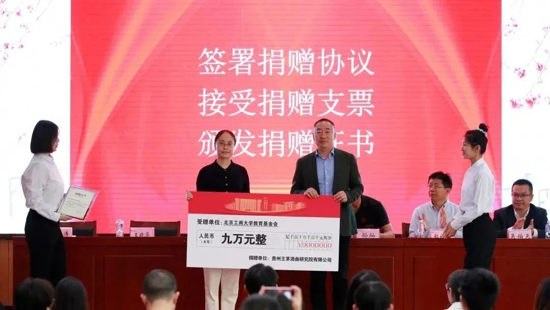 為貫徹國發2號文件關于“支持赤水河流域等創新生態產品價值實現機制”的指示精神,強化產學研結合創新,助力培養更多的釀酒及酒曲研究專業人才,貴州王茅酒曲研究院向北京工商大學教育基金會捐贈9萬元,設立“6353秉乾德馨獎學金”,表彰北京工商大學全日制大學本科學生15名和全日制碩士及博士研究生10名。