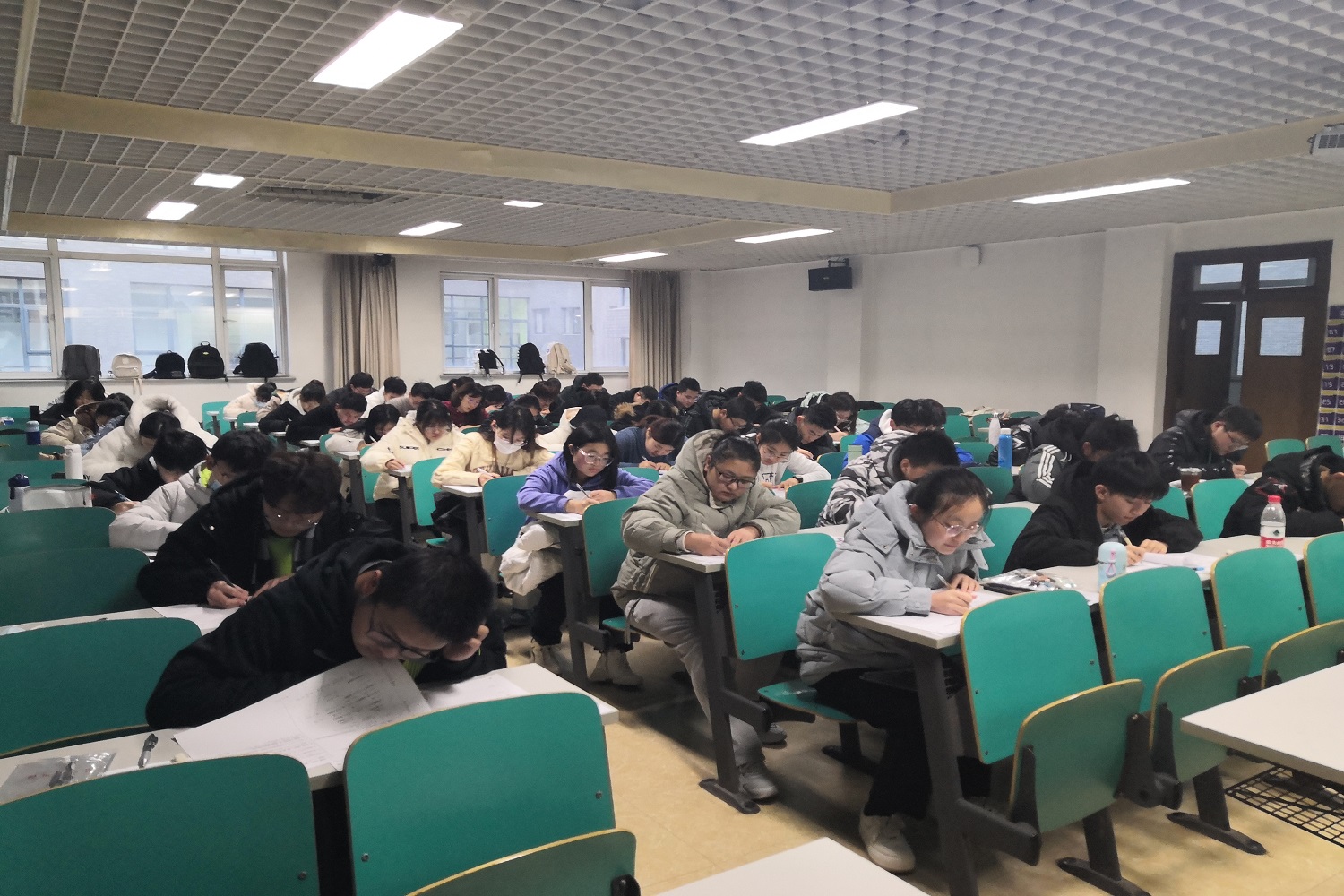 前期籌備階段,學(xué)生處制定了周到細(xì)致的《“無人監(jiān)考”誠(chéng)信考場(chǎng)試點(diǎn)工作方案》,選定2021級(jí)人工智能學(xué)院高等數(shù)學(xué)(上)和商學(xué)院微積分(上)作為試點(diǎn)考試科目,通過學(xué)生自愿報(bào)名的方式挑選參加試點(diǎn)考試學(xué)生,教務(wù)處、學(xué)生處共同提前踏勘選定符合“無人監(jiān)考”基本條件的文二205、206教室作為試點(diǎn)考場(chǎng),并對(duì)考場(chǎng)視頻監(jiān)控設(shè)備進(jìn)行了測(cè)試。學(xué)生處編制《自愿參加“無人監(jiān)考”考試承諾書》《“無人監(jiān)考”考場(chǎng)注意事項(xiàng)》,讓參加試點(diǎn)考試的學(xué)生全面了解考試的目的意義、相關(guān)要求和考試流程。考試現(xiàn)場(chǎng),考生到達(dá)考場(chǎng)后須持有效證件,站在預(yù)先設(shè)定好的“照相區(qū)”面向攝像頭進(jìn)行視頻自動(dòng)打卡。監(jiān)考教師考試開始后15分鐘內(nèi)負(fù)責(zé)發(fā)放試卷、解答學(xué)生問題,之后離開考場(chǎng),在中控室觀察學(xué)生表現(xiàn),現(xiàn)場(chǎng)進(jìn)入“無人監(jiān)考”狀態(tài)。考試結(jié)束前10分鐘,監(jiān)考教師再返回考場(chǎng)收取試卷。期間如有學(xué)生提前交卷,可向攝像頭舉手示意,將試卷倒扣在桌面后自行離開考場(chǎng)。如有學(xué)生出現(xiàn)突發(fā)情況,可通過教室前側(cè)的固定電話撥打“0”報(bào)告,監(jiān)考教師會(huì)立即返回考場(chǎng)進(jìn)行處理。