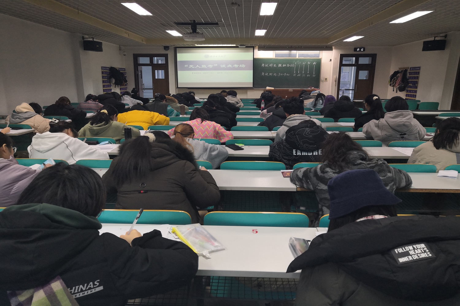 作為首批試點(diǎn)考生,商學(xué)院財(cái)務(wù)211班張琦說:“當(dāng)時(shí)學(xué)院通知‘無人監(jiān)考’試點(diǎn)考試自愿報(bào)名時(shí),僅2分鐘就報(bào)滿了50名同學(xué),我很榮幸能成為學(xué)校首批試點(diǎn)考生。參加本次‘無人監(jiān)考’經(jīng)歷,讓我更加認(rèn)識(shí)到作為一名學(xué)生,無論是否有老師在場(chǎng)監(jiān)考都應(yīng)嚴(yán)格自律,拒絕抄襲。誠(chéng)信和勤勉才是我們一生的寶貴財(cái)富”。人工智能學(xué)院電信215 班賀志談到:“在‘無人監(jiān)考’的考場(chǎng)里我切身感受到了誠(chéng)信考試的氛圍,考場(chǎng)中每一位同學(xué)幾乎都沒有抬過頭,專心致志答題。與以往考試相比,這次體驗(yàn)其實(shí)是一種‘忘我’的享受,鞭策自己要多一份責(zé)任和自律,考起來反而更加坦然”。