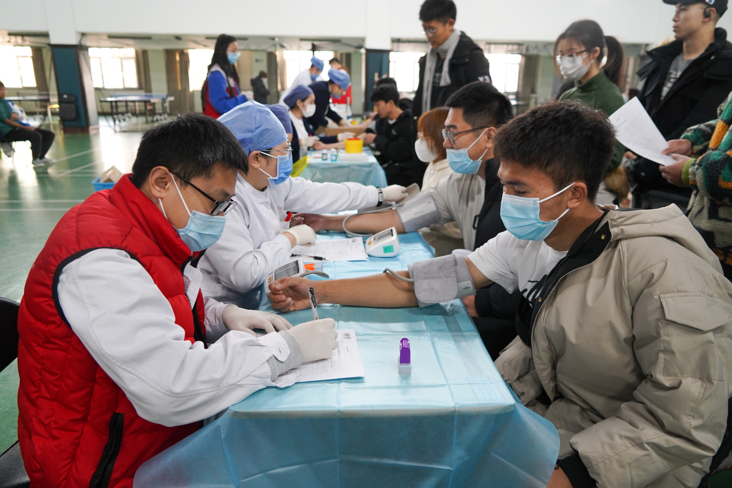 12月15日,由我校紅十字會組織的2021年秋季學期無償獻血活動在良鄉主校區舉辦。天色剛亮,身著“紅馬甲”的志愿者們已經就位,準備好了補給、布置好了場地。獻血的同學們陸續走進獻血的場地,不久門口便排起了長隊。